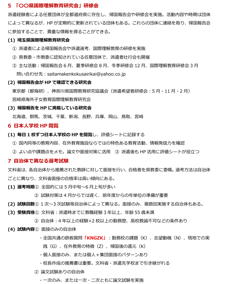 (1)派遣選考ブログ:「日本人学校への道」を2週に1回、更新